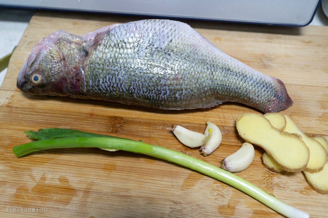 辅料:葱、姜、蒜、料酒、蒸鱼豉油、盐