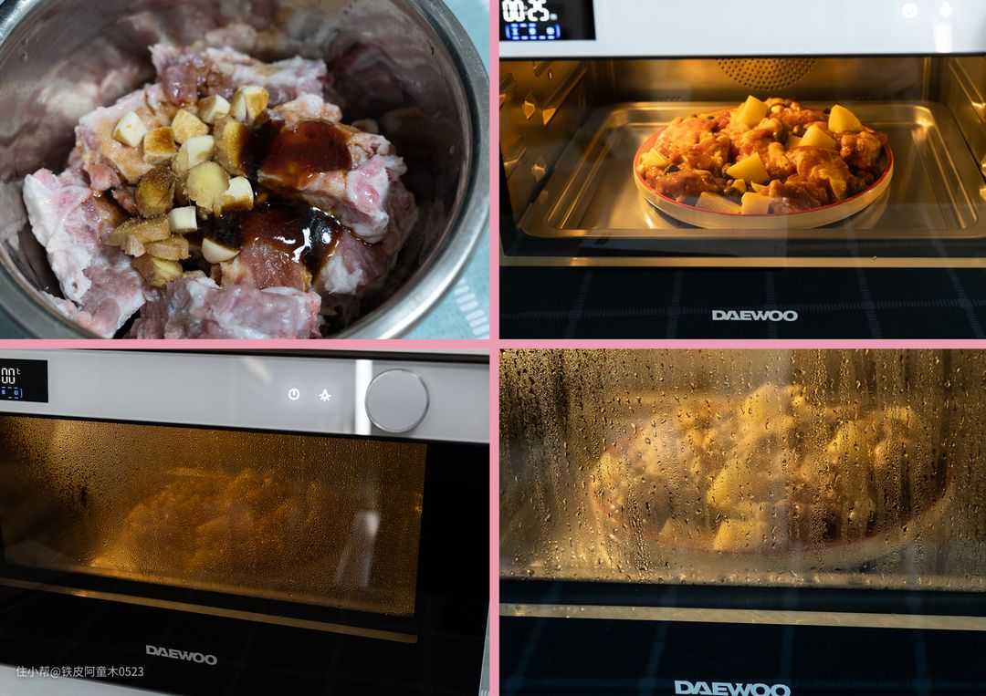 腌制方法同上面的土豆蒸排骨做法,由于家里排骨较多,所以特意剩下四块小排骨来尝试“热风烤功能”!