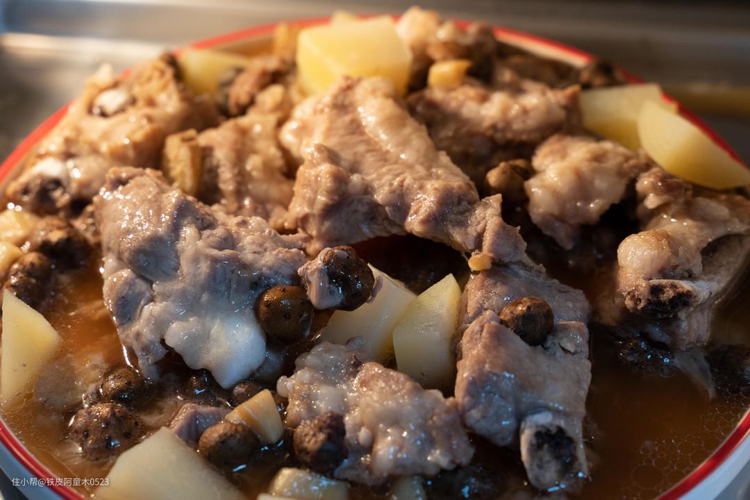 原材料:猪排骨(腔骨也可)、土豆(也可根据自己的口味调换成山药、芋头、胡萝卜等)
