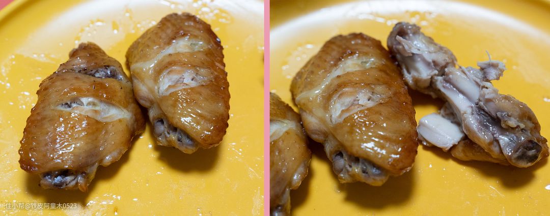 可谓是色香味俱全哦,因烤制的火候均匀、时间适中,鸡翅外部色泽光亮,没有烤糊,内部鸡肉也很嫩滑,鲜香多汁,让人回味无穷!因腌制的时间较长,腌制的秘汁已经渗透至鸡肉内部,里面的鸡肉相当入味!一晚上,我和老公两个人十个鸡翅一扫而光,哈哈哈!