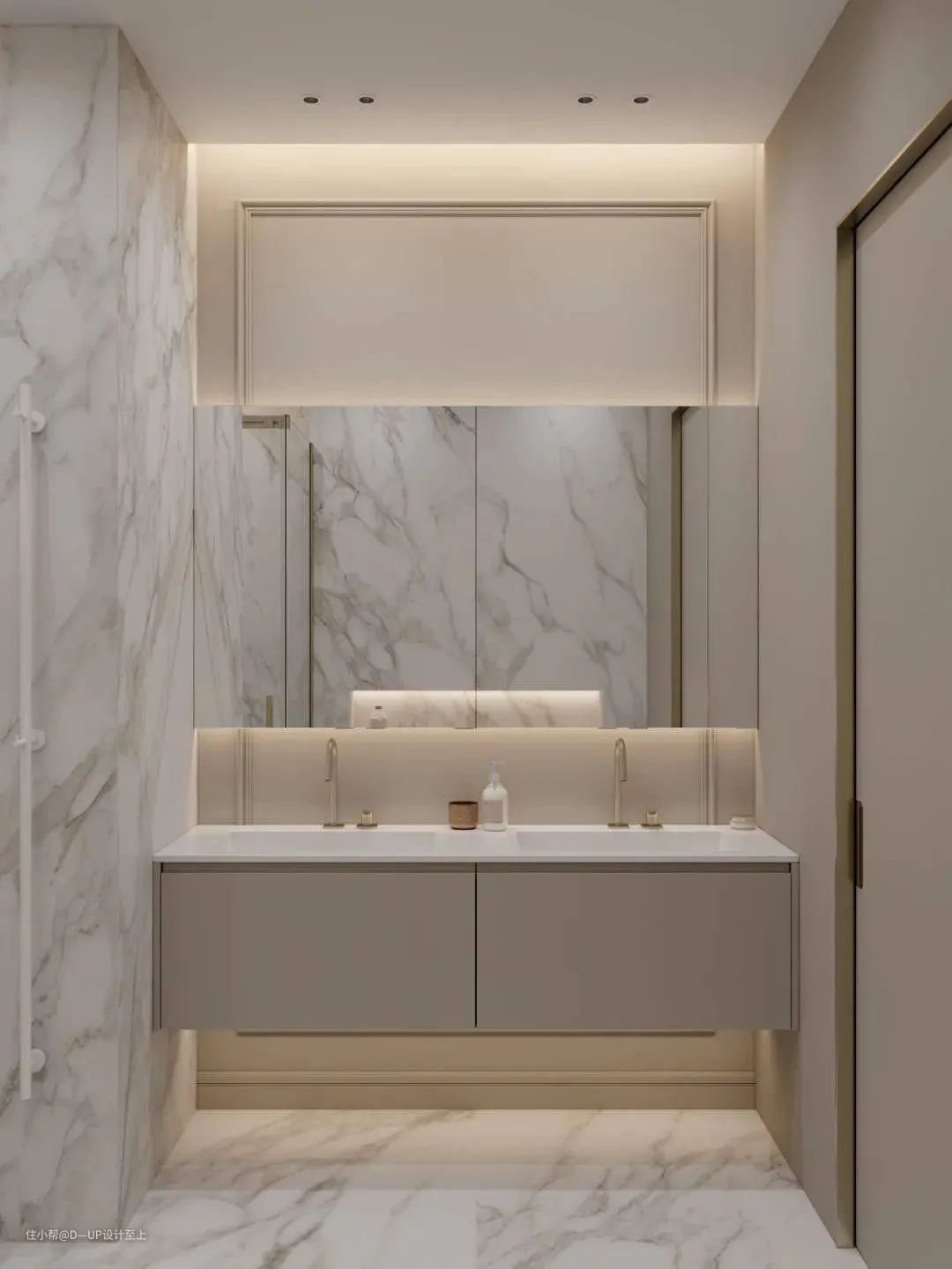岩板本身优秀的防水防变形防腐蚀的性能,使得岩板在卫浴空间无所畏惧,所向披靡。不论是浴室柜,浴缸边缘等部位,都可以充分运用。