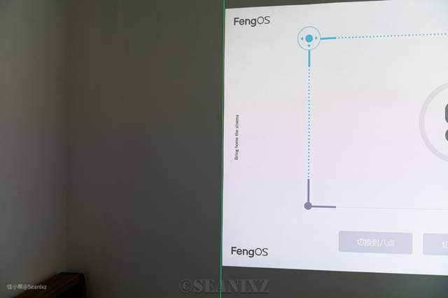 支持最高8点梯形校正,使用激光水平仪(绿线)来对比了一下,校正功能可以很好的校正画面变形,能够调整至边沿几乎贴合垂直线,有非常不错的校正能力,体验比大多数投影仪要好很多。