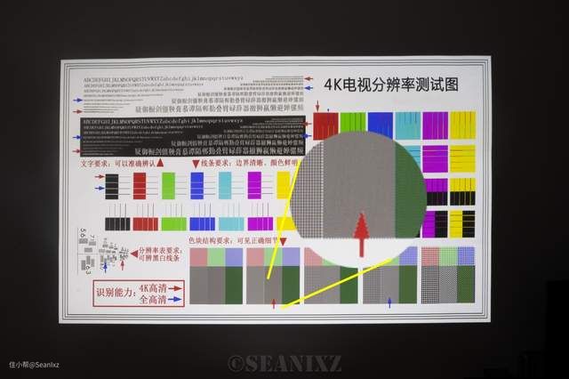4K测试图上4K高清部分清晰可见,锐度还不错,字体清晰可见,放大来看也是没有问题的,真4K无误。