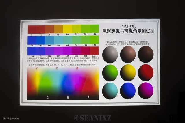 本想用校色仪来测试颜色表现,但激光光源的工作模式与投影有差别,实际测试不出色彩,所以色域和色准没法测试了。