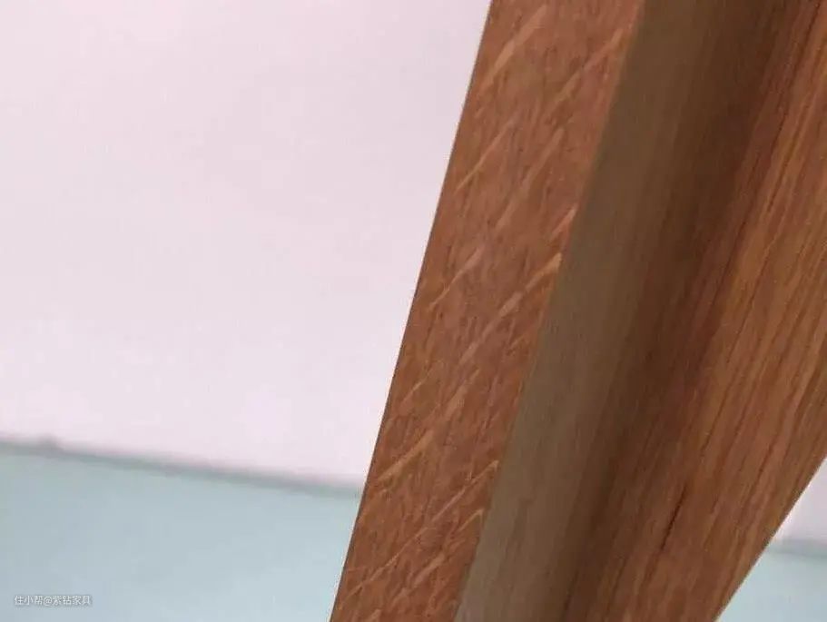 另外,我们还可以专门检查端面的纹路走向,“真实木”的端面通常是弧形纹。