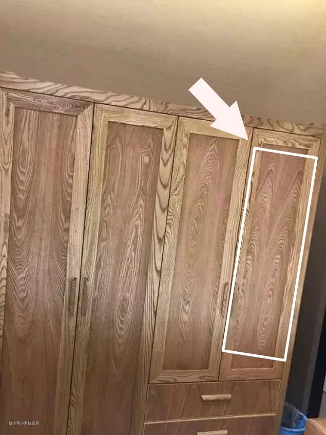 如果看见家具表面有几乎一模一样的花纹,八九不离十是贴皮产品。