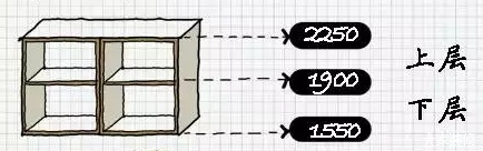 接下来,我们讨论吊柜。以普通高度的吊柜为例,内部经常分为上下两层: