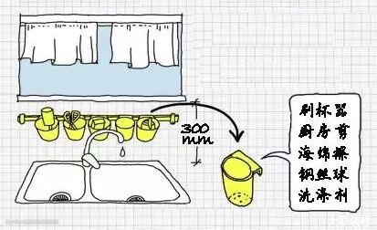 水槽区(常位于窗前): 这里有不少物品常常是半湿的状态,难以收纳。如果在此处善用挂杆,问题便迎刃而解!比如,跨越窗户安一根横杆,挂几个小杯子,放些常用的小工具。