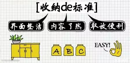 收纳的三大标准包括:界面整洁,内容了然和取放便利。