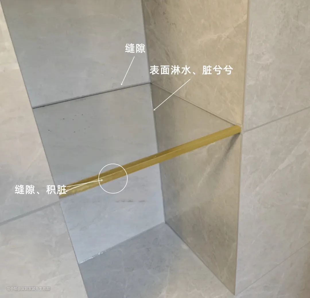 实际上,如果做一些功课,即使是用瓷砖砌成的壁龛隔板也可以做得很薄,但装修的时候,不要用砖做层板后再用瓷砖包裹,而是两块瓷砖粘在一起,直接用作层板。