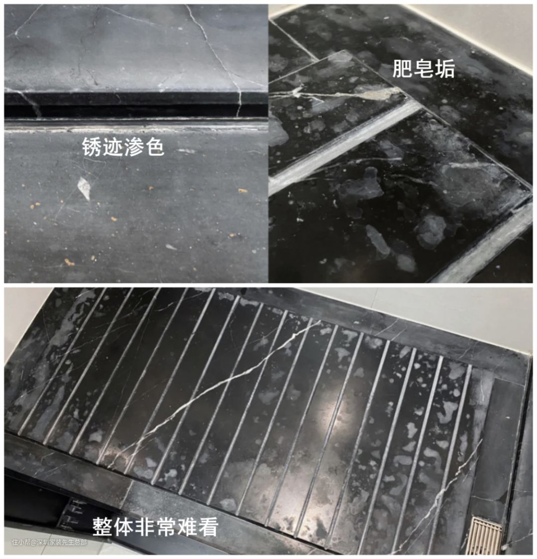 长时间后,还会出现各种肥皂垢、锈迹渗色等问题,整体非常难看,恨不得直接铲掉。
