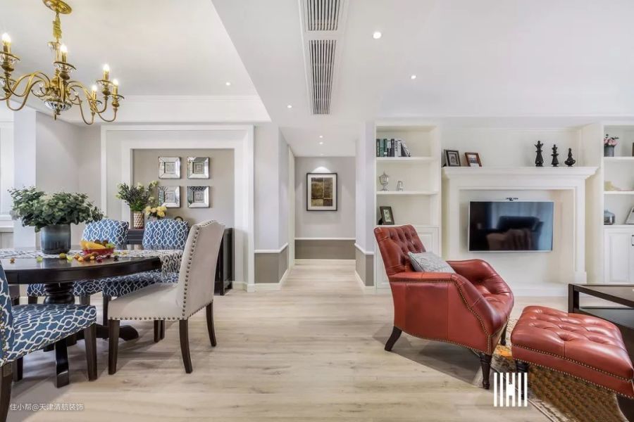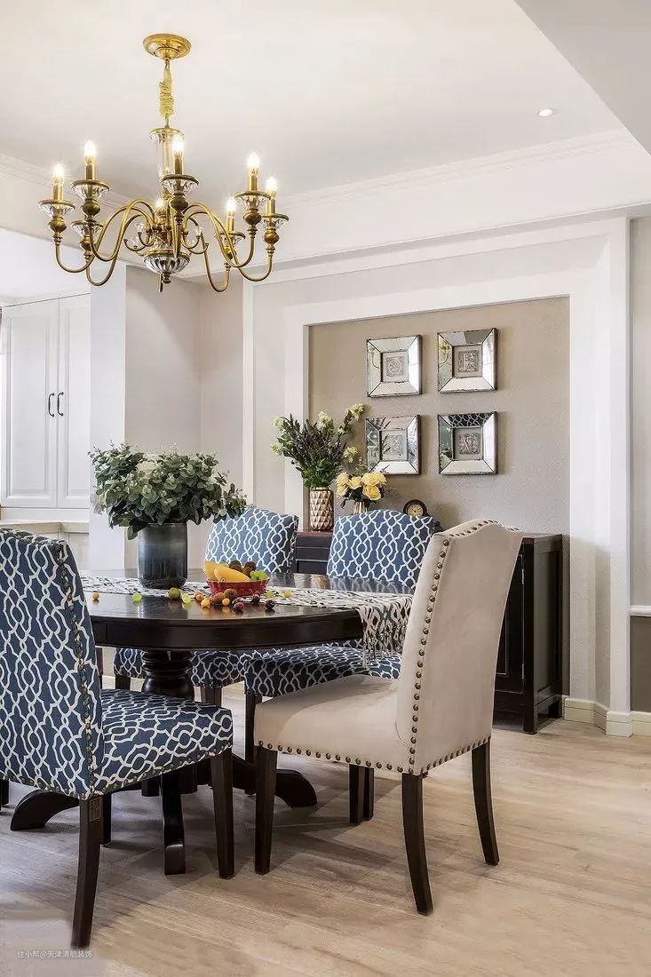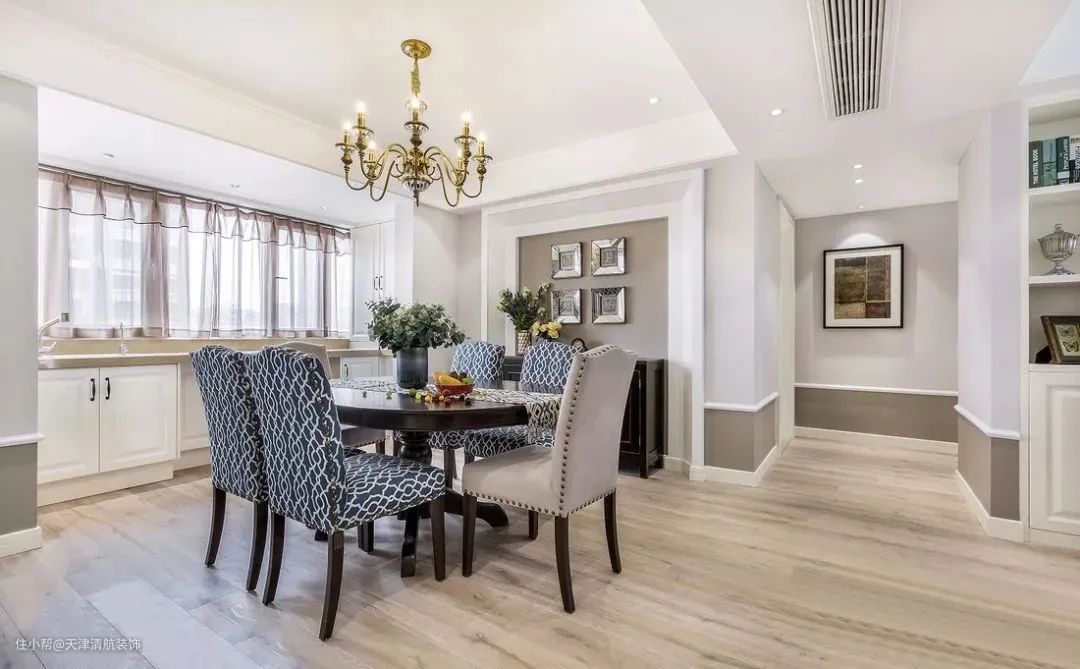 143平美式风格装修,入户玄关让人眼红,客餐厅优雅装出高级感