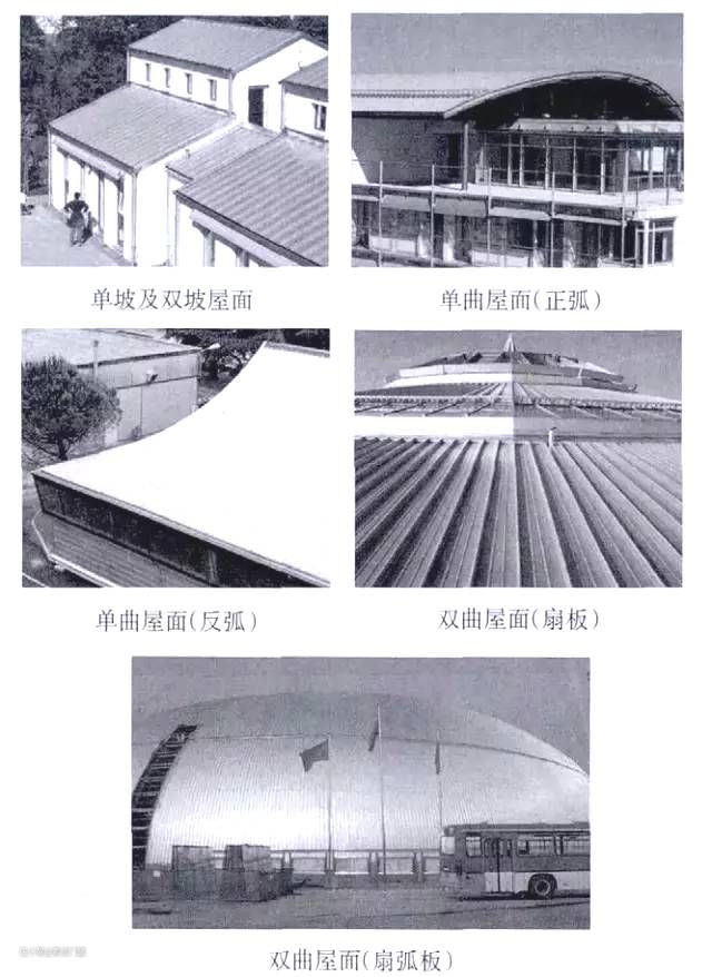 1)直板:适用单坡、双坡及半径>自然成弧半径的单曲屋面;