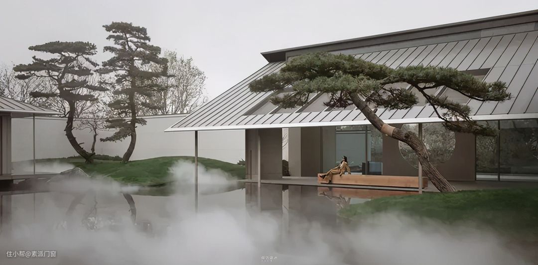 江山宸院的屋顶运用加入现代语汇,集结唐朝精致文化并融合宋代美学,空间于山水云雾之间展开,独树一格。