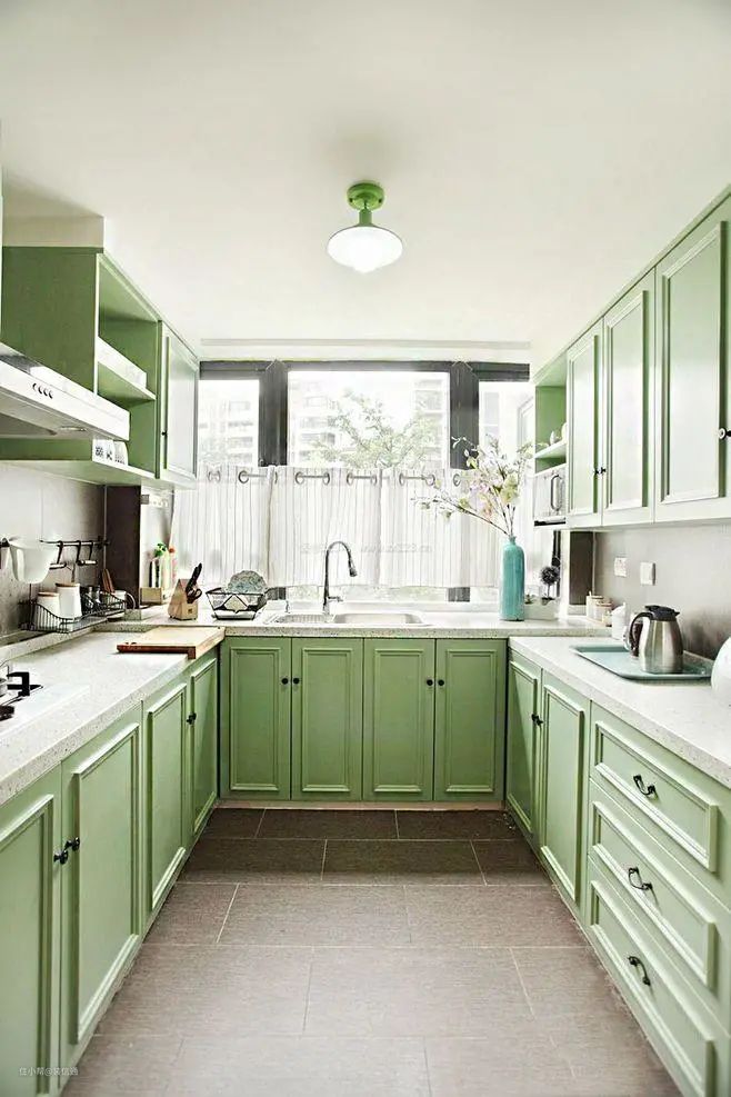 自然的绿色系清新、明亮,时时刻刻都体现了自然的风景,令厨房拥有不一样的活力与朝气。