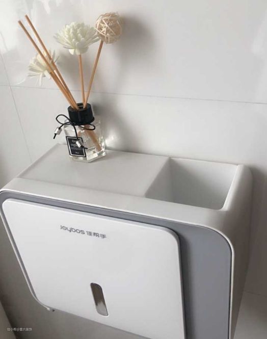 tip:马桶旁的纸巾盒尽量选这种带盖防水的,洗澡也不会打湿纸巾,减少滋生细菌的风险。