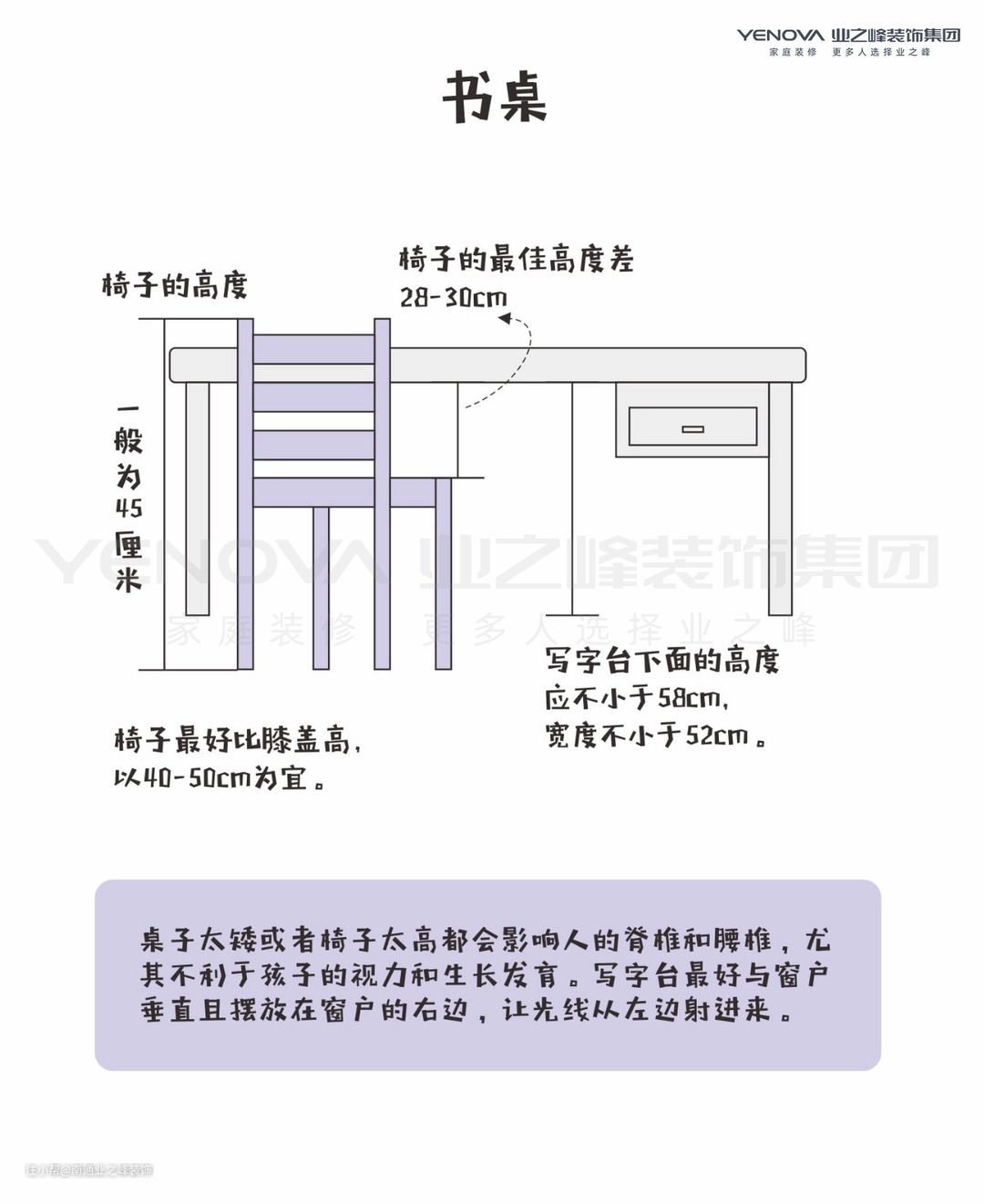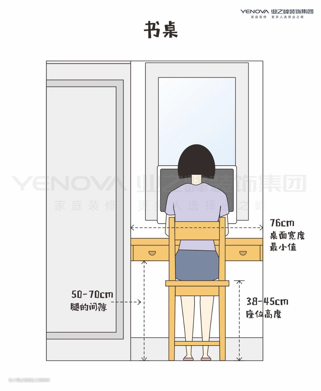书桌的设计要符合人体工学,尺寸要跟身高、体型匹配,这可是有科学依据的。