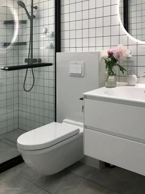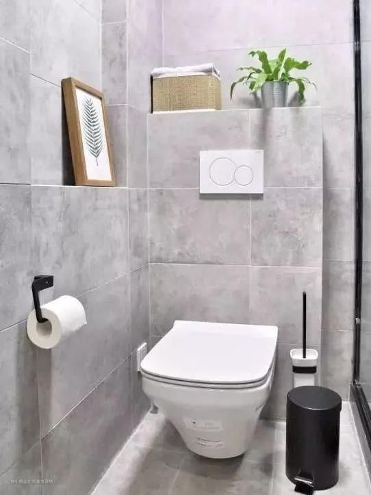 壁挂式马桶需要在后方的墙面安装水箱与管道,因此会凸出部分墙面,需加砌一个矮墙。矮墙上方可装几层格架,增加收纳空间更实用。注意的是壁挂马桶需装在承重墙上,不想麻烦也可以直接安装后排式马桶,管道直接连在排污管,包管处理即可。