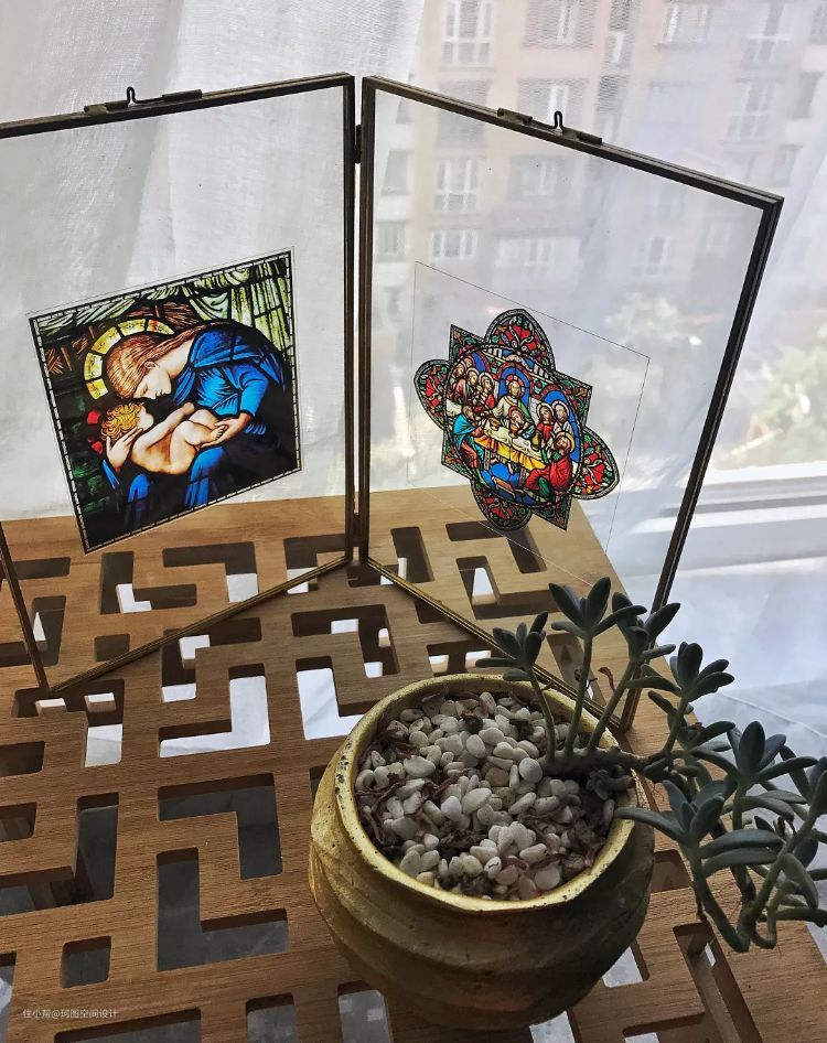 - 当光线透过彩色玻璃窗照射进来,会把空间渲染的五彩缤纷、光怪陆离,这是属于自己的意境,属于自己的小小世界。
