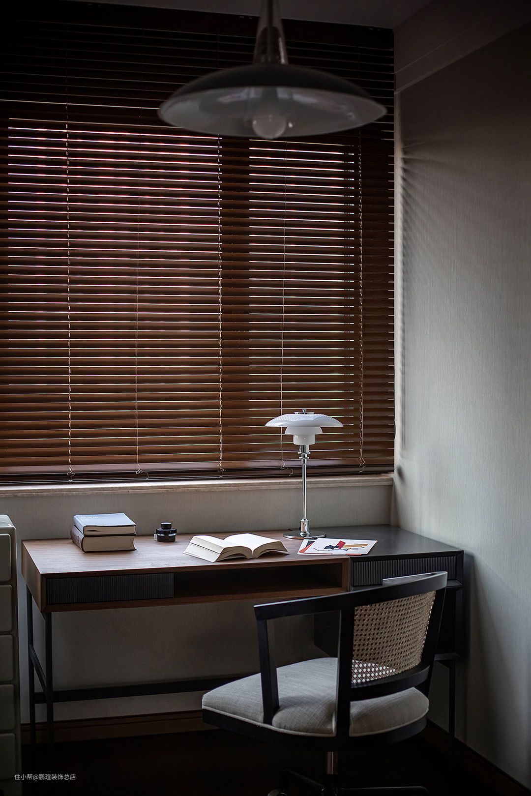 书桌上同样使用了Poul Henningsen的设计作品-Louis poufsen PH4/3台灯。