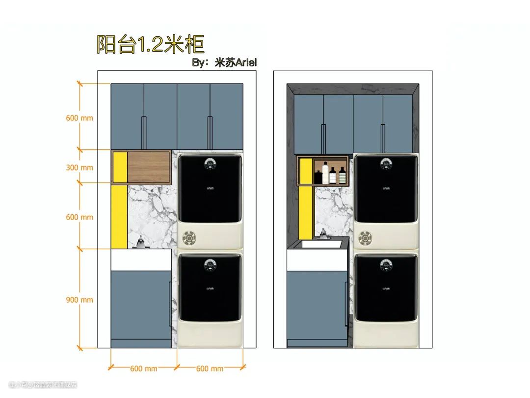 #4. 阳台1.2m布局【60cm地柜+60cm洗衣机烘干机叠放】