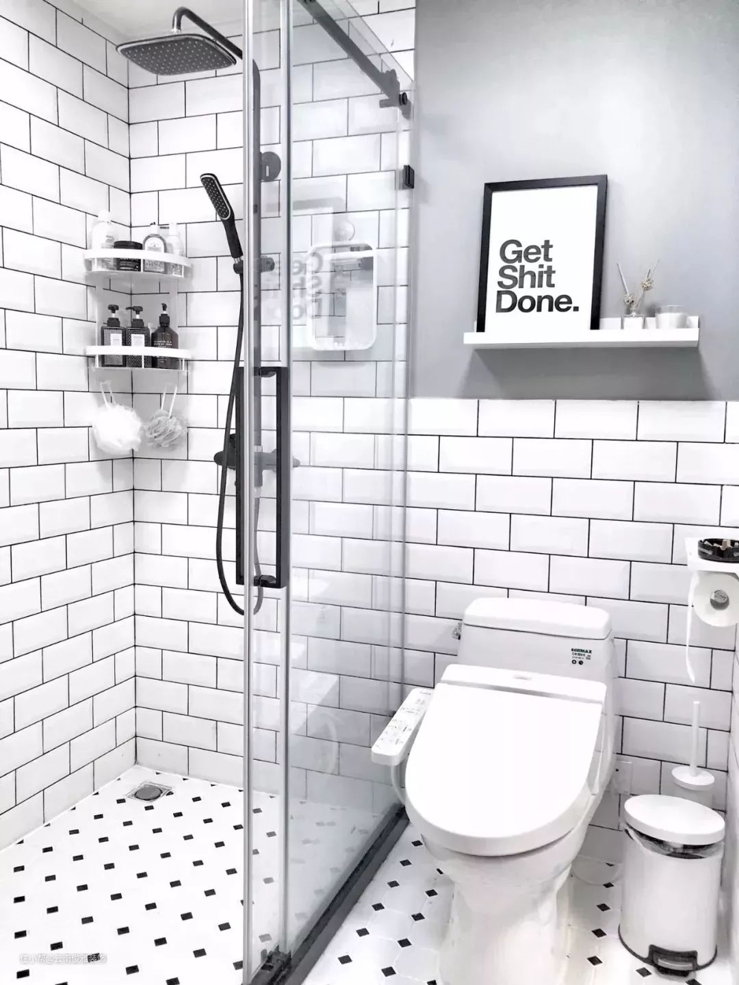 白色可以提升空间的亮度,给人的感觉就是整齐干净。小卫生间贴白色砖看着更大更亮,但是不便于日常的打扫,强迫症就不推荐使用啦!
