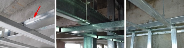 9、施工吊顶完成面距离土建面很小的吊顶可以用卡式龙骨当支撑部分(待修正)。