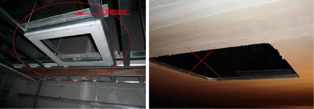 5、经常上人的大型空间检修孔要加固,顶面检修口增加5#角钢加固框,防止以后在工人维修时破坏吊顶。