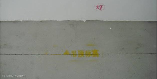 用水准仪在房间内每个墙(柱)角上抄出水平点,弹出水准线,从水准线量至吊顶设计高度加上要求的石膏板的厚度,用粉线沿墙(柱)弹出水准线,即为吊顶次龙骨的下皮线。
