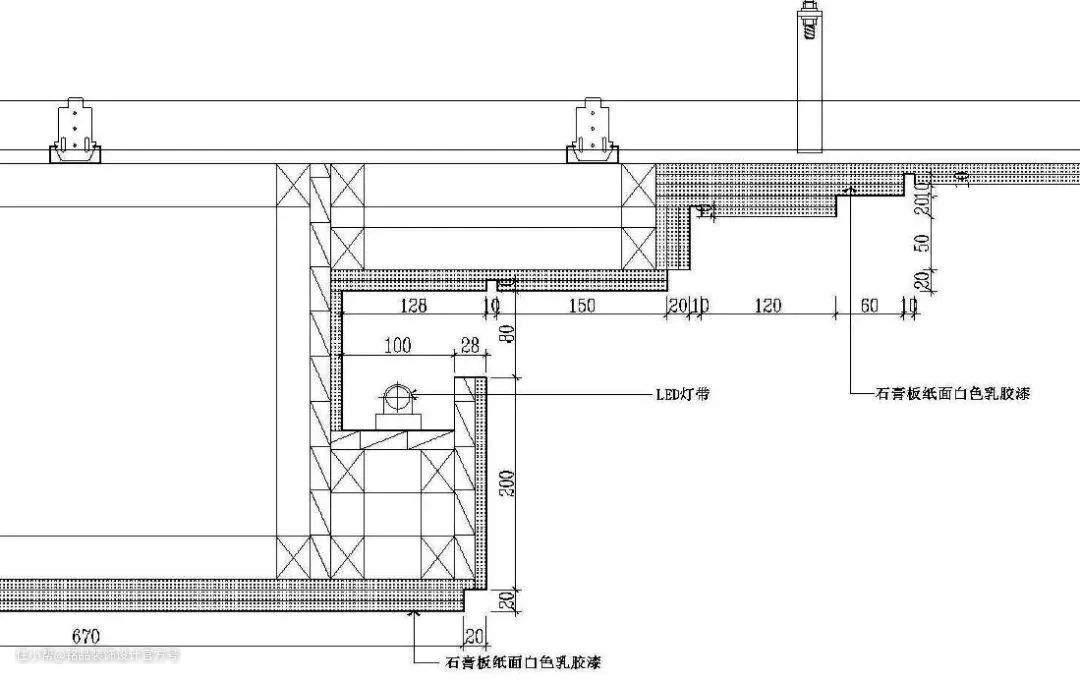 3、走道通道大于15M长的灯槽造型吊顶采用方管和轻钢龙骨制作,如用细木工板要考虑到后期会容易变形、裂缝等缺陷。