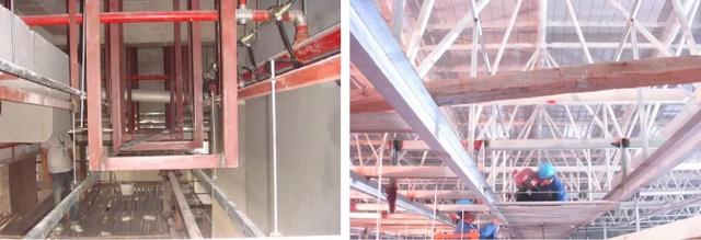 6、管道设备下方应设置转换层,同时注意照明灯具及喇叭嵌入深度的尺寸,提前调整。