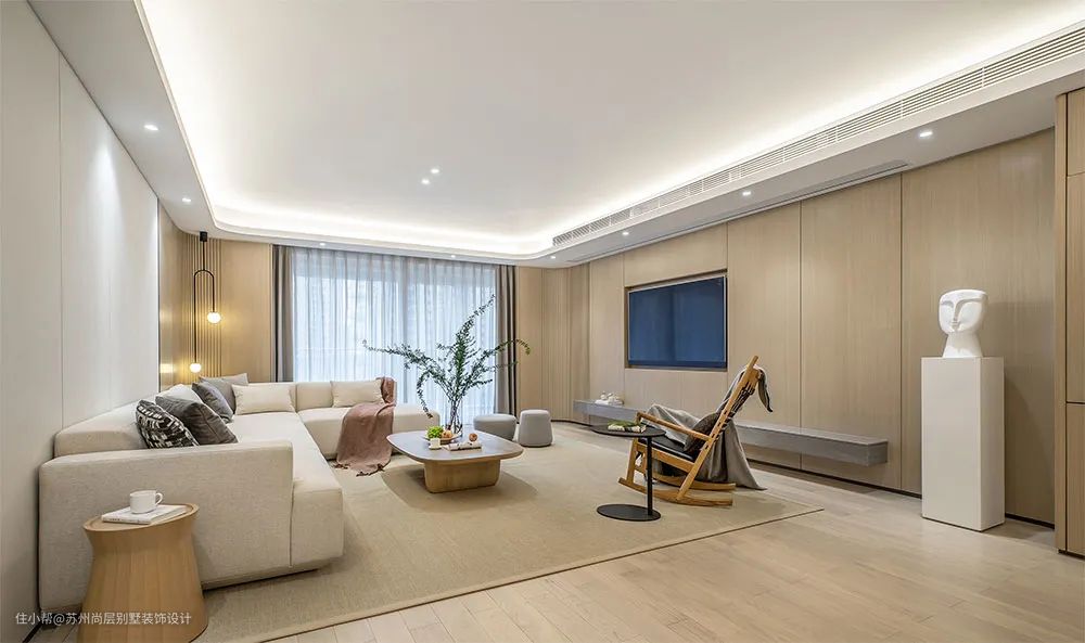 208㎡现代简约,无主灯空间,大面积木饰面,自然舒适的极简