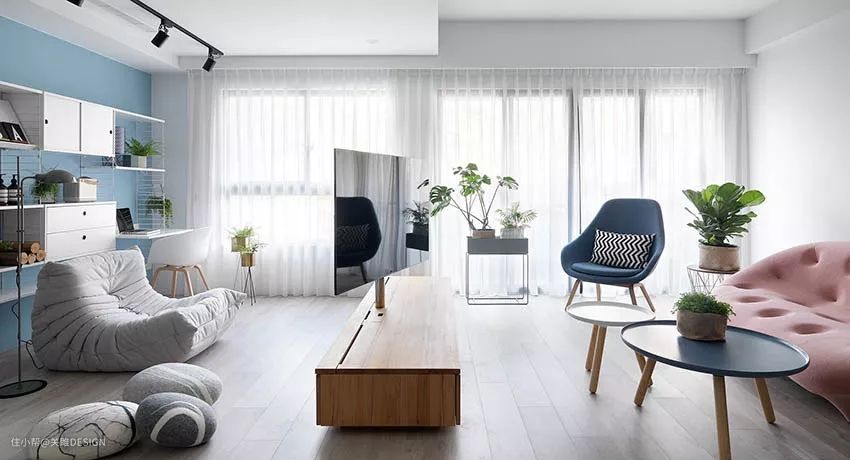 这个案例以电视为隔断分开客厅与书房,整个空间的视野就显得更加开阔通透。