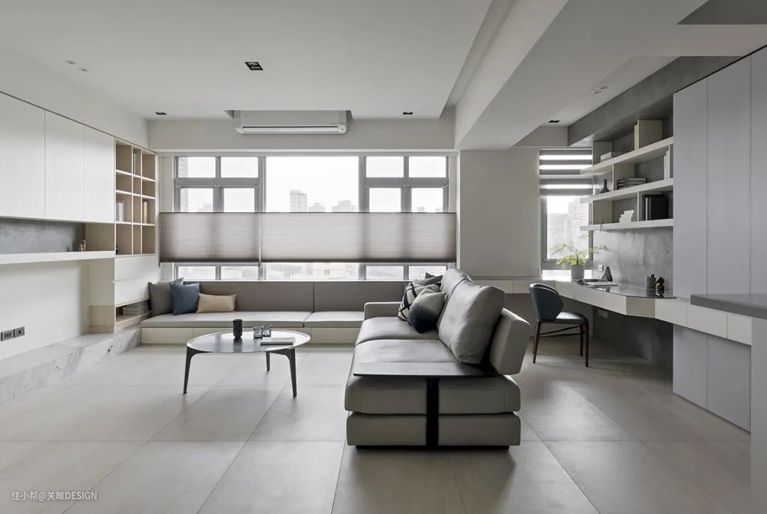 利用沙发做为隔断,以沙发背后设计一个开放式的书房区域是比较常见的。沙发背后放置书桌,让空间的分区更明显,而且沙发也有了靠背,更能让人感觉安稳踏实。