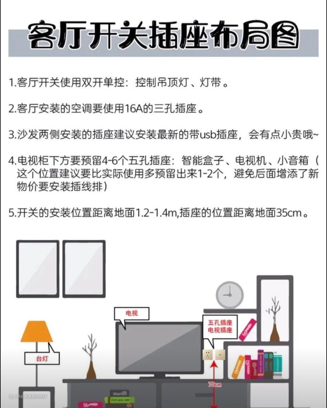 2、还有一点,所有的插座要根据家具的尺寸规划,避免被家具遮挡。