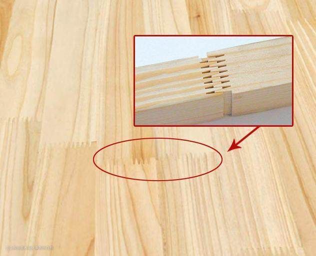 如果不加上下两层板子,直接进行热压、刨光处理,那就成了“指接板”。指接板比大芯板多了一道“开榫”的工序,少了上下两层板,用的胶也少了很多。