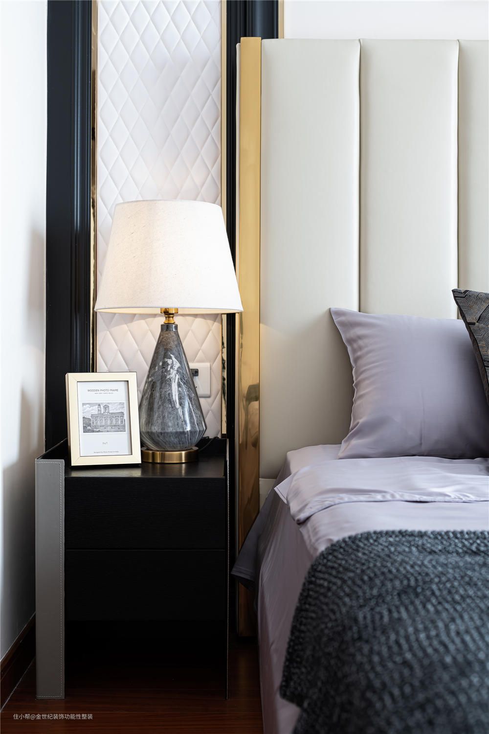 #卧室 #主卧沿用了客餐厅的造型框架,床头两边的硬包造型选用了菱形纹格稍做区别,立体感更强。飘窗利用凹位结合窗套做了书架,天气好的时候可以坐在窗台上读书画画,飘窗柜亦可放置梳妆用品,清晨起来给自己画一个美美的妆,迎接美好的一天。弧形皮革软包的梳妆台、凳,与背景造型相得益彰,生活少些磕磕碰碰,多些柔软。床头左边是原本开发商留下的衣柜,因此床头位置稍显紧张,却也够用。超喜欢主卧这款吊灯,极简时尚造型独特。