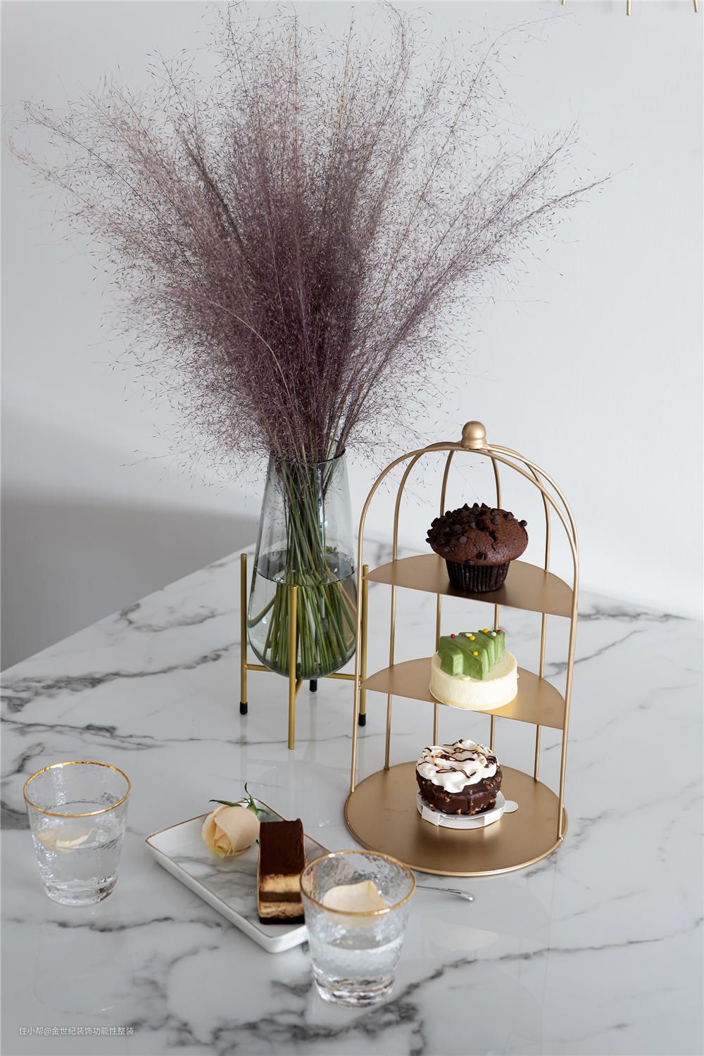 #餐厅 #金属大理石餐桌上摆放着女主人精心准备的花艺与糕点,毛茸茸的粉黛子在白色大理石餐桌的映衬下显得清冷妩媚,精致小巧的甜品摆放在鸟笼糕点盘里,趣味十足,快飞到我的嘴里来!