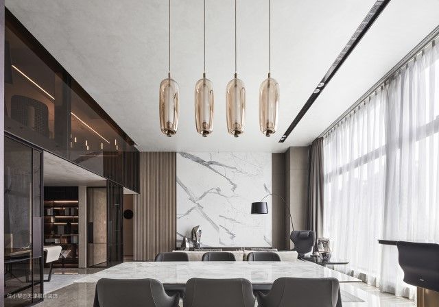 此外,除了吸顶灯与吊灯,在一些比较现代化的装修中,还可以选择导轨灯、无主灯、灯带、筒灯等搭配,具体就是要根据具体设计方案来搭配选择了。