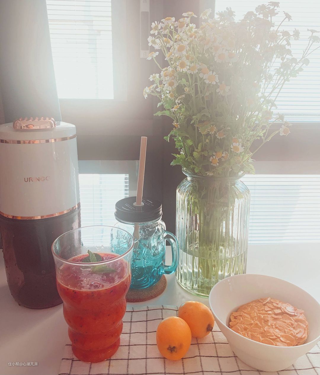 终于可以这样畅快淋漓的喝一杯。之前用榨汁机榨汁,我只能边喝西瓜汁,边吐西瓜籽渣渣,请自行脑补。