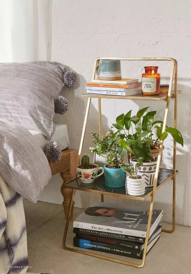 置物架,可以满足你睡觉前使用的所有物品的摆放和收纳,并且还可以根据自己的喜好分类和装饰。