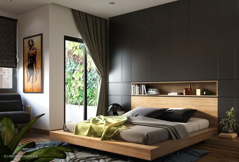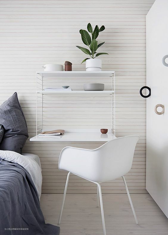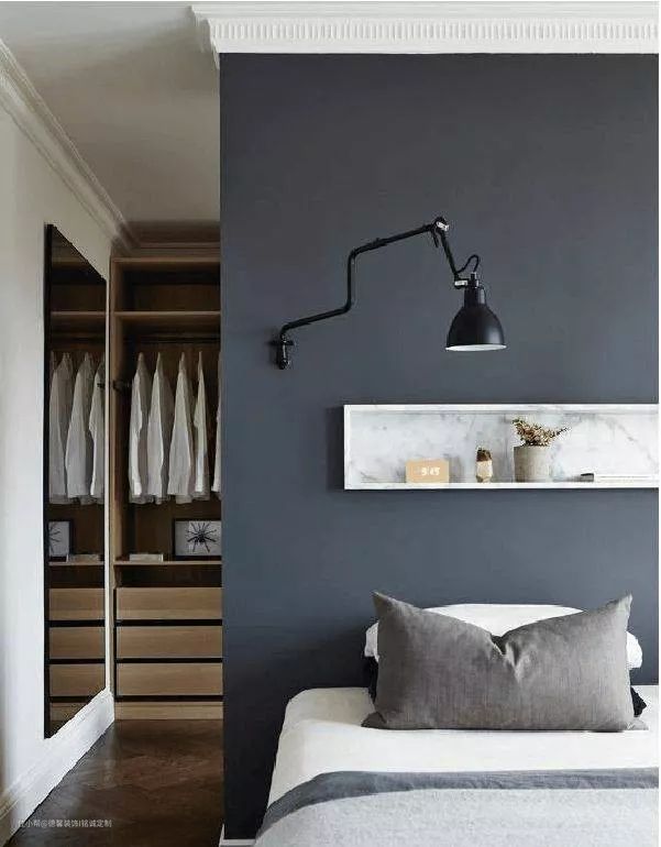 如果落地的置物架不够喜欢,那么挂在墙上的置物架呢?满足的你的收纳和装饰的心,床头的一边或者两边的设计,不占空间。