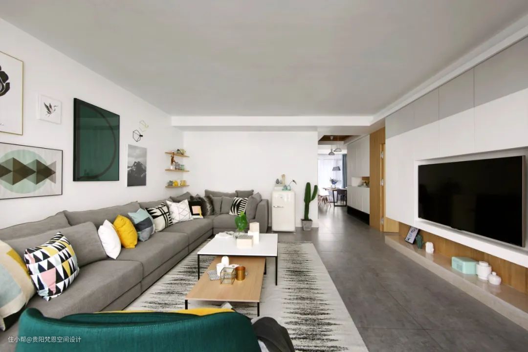 客厅铺上灰色的地砖,可以营造出端庄自然的客厅空间感,结合上舒适雅致的软装家具,更是让空间呈现出和谐轻松的惬意氛围。