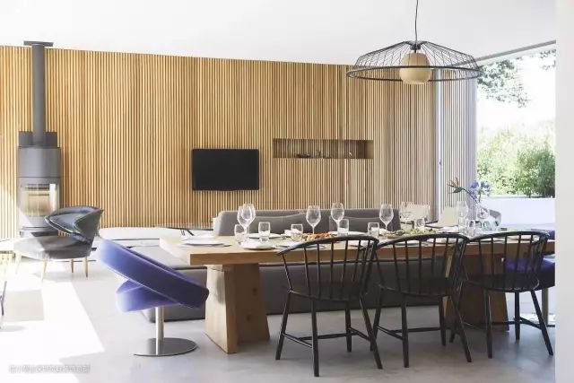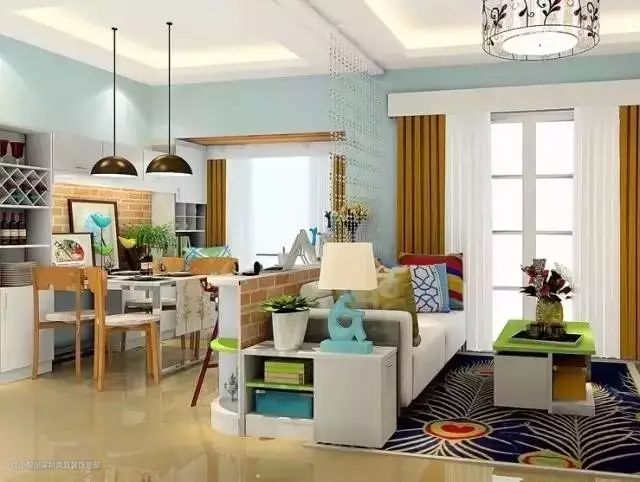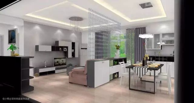 对于餐厅客厅一体的户型来说,又想要一个功能分区,那么沙发就是一个很好的突破口。建议:沙发可以放在餐桌一边用来做功能隔断,这样设计简单粗暴,又能解决实际问题。