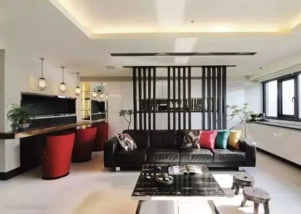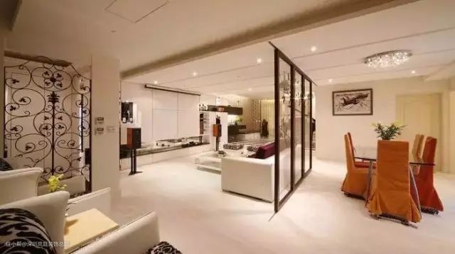 第六种:靠餐厅,沙发充当功能分区隔断;