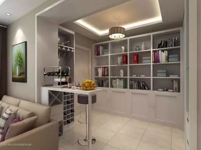 第四种:靠柜台,沙发后可以是书柜也可以是储物架;