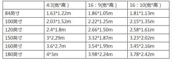 银幕尺寸参照表