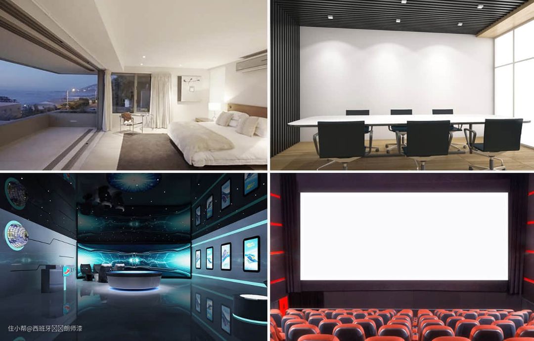 首先我们需要了解投影机,投影效果好不好主要还是投影机,投影幕只是起到辅助作用,就好比好马配好鞍。一般来说DLP投影机由于采用DMD芯片来成像,其是反射式的原理,采用微小反射镜的方式成像,所以画面的对比度好。这时选择白色投影漆搭配比较好,不仅可以提高色彩的饱满度,还能提高银幕的亮度。因为DLP投影色彩也有局限,所以很多人也会选择LCD投影机。虽然LCD投影机技术色彩更好,但是对比度弱一些。因此在选择投影漆时可以选择灰色,灰色可以增加色彩的对比度和饱满度。