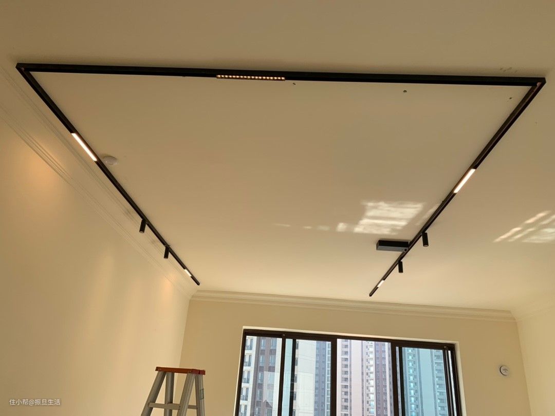上面这个case是@振旦生活 店里客户的晒单返图,他家就是精装修房改无主灯。怎么改呢?用明装磁吸轨道灯。