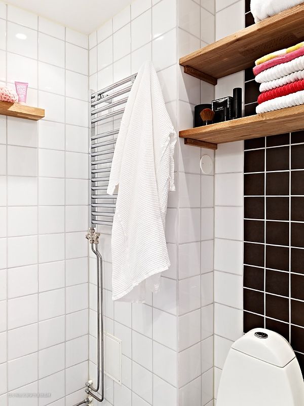 4 ▲ 马桶上方,选择不会碰头的高度,放上搁板,储藏一些毛巾和瓶罐。